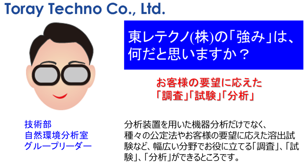 お客様の要望に応えた「調査」「試験」「分析」 | 東レテクノ株式会社