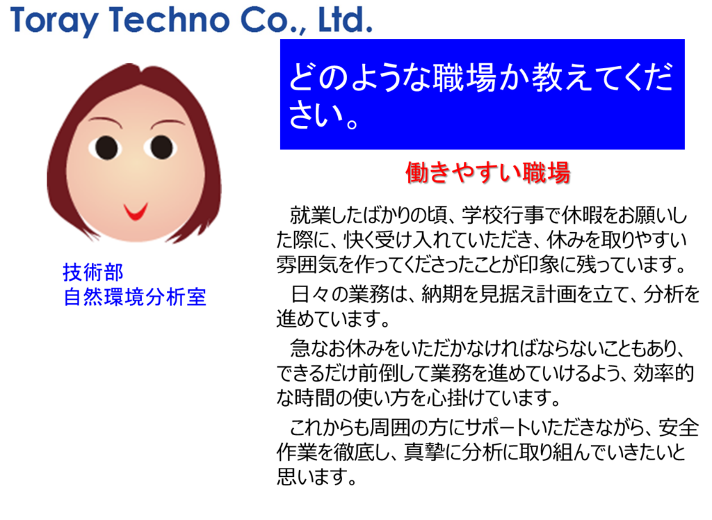 働きやすい職場 | 東レテクノ株式会社