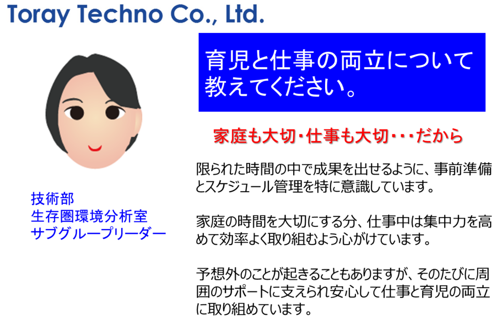 家庭も大切・仕事も大切・・・だから | 東レテクノ株式会社